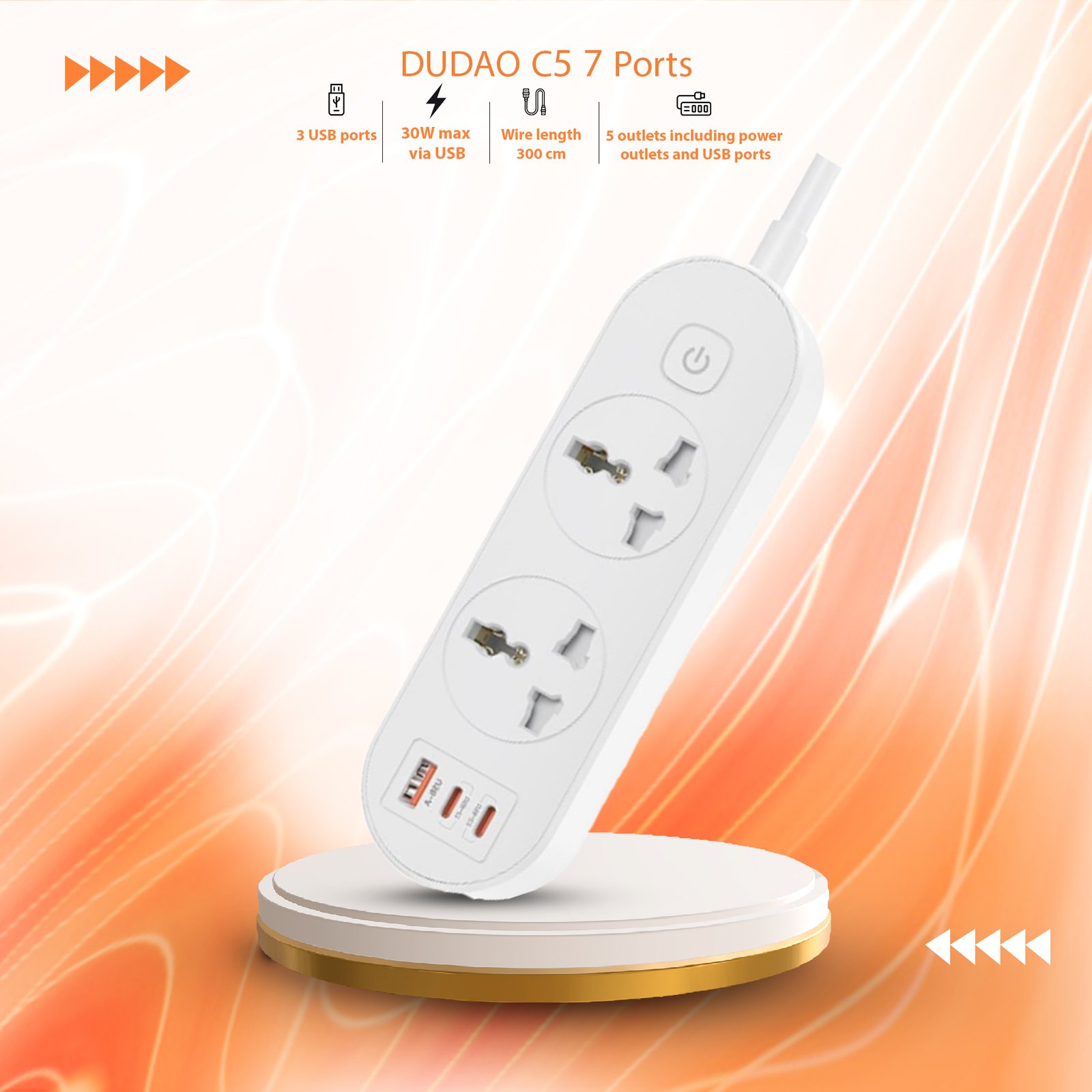 عدد المنافذ 5 منافذ تشمل منافذ كهرباء ومنافذ USB