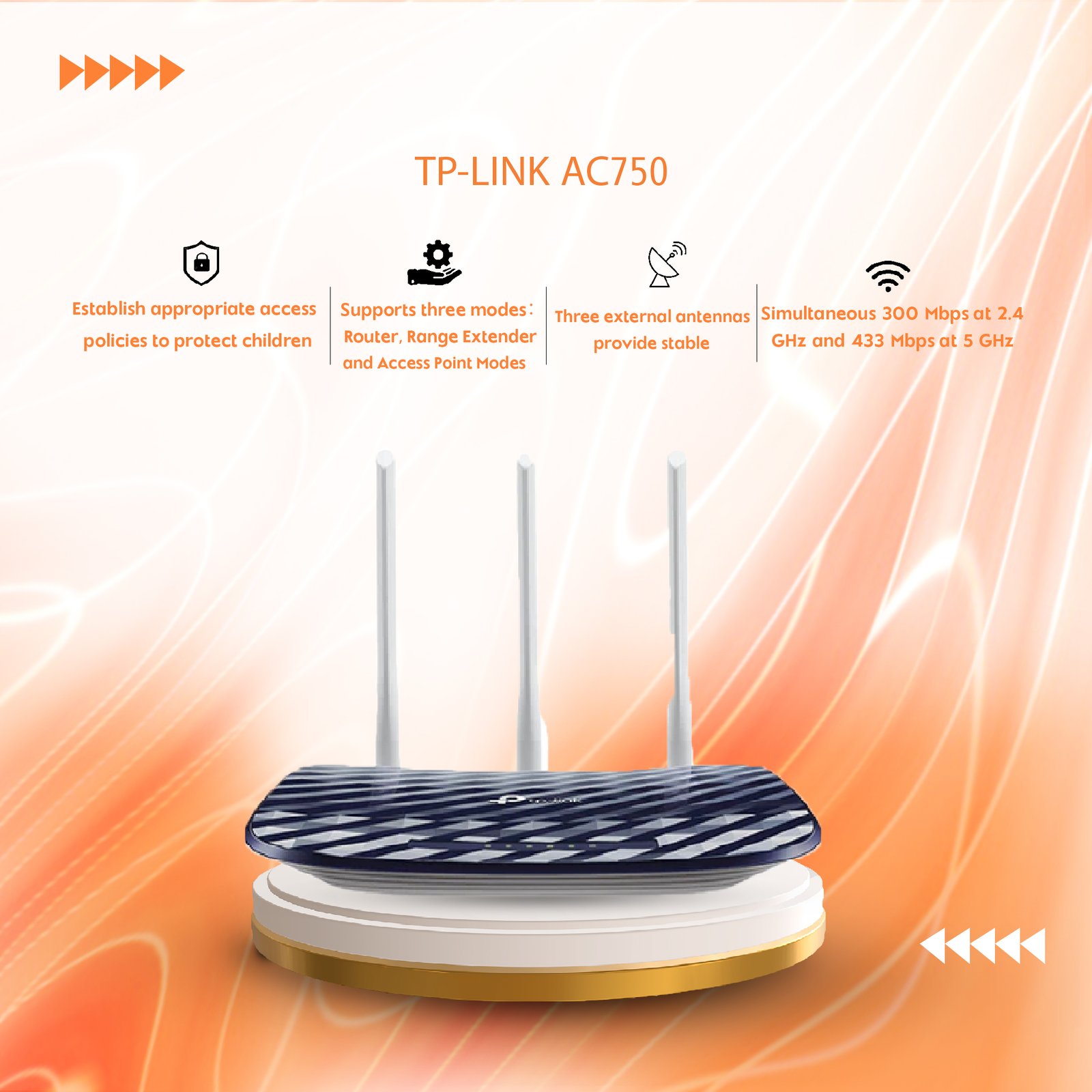 Supports three modes:Router,Range Extender and Access Point Modes